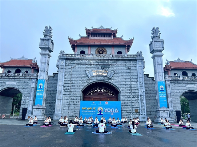 | People join the International Day of Yoga 2025 on June 7 at Hùng Kings Temple Complex in Phú Thọ Province. Photo Courtesy of the embassy |