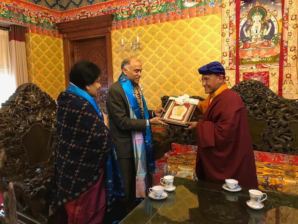 Ambassador P. Harish and Mrs. Nandita Parvathaneni met His Holiness Gyalwang Drukpa at the Tay Thien Grand Mandala Stupa in Vinh Phuc Province. His Holiness Gyalwang Drukpa is on a visit to Vietnam with his followers, has chaired a three-day spring festival at the Tay Thien Grand Mandala Stupa and would visit other cities in Vietnam. - February 24, 2019