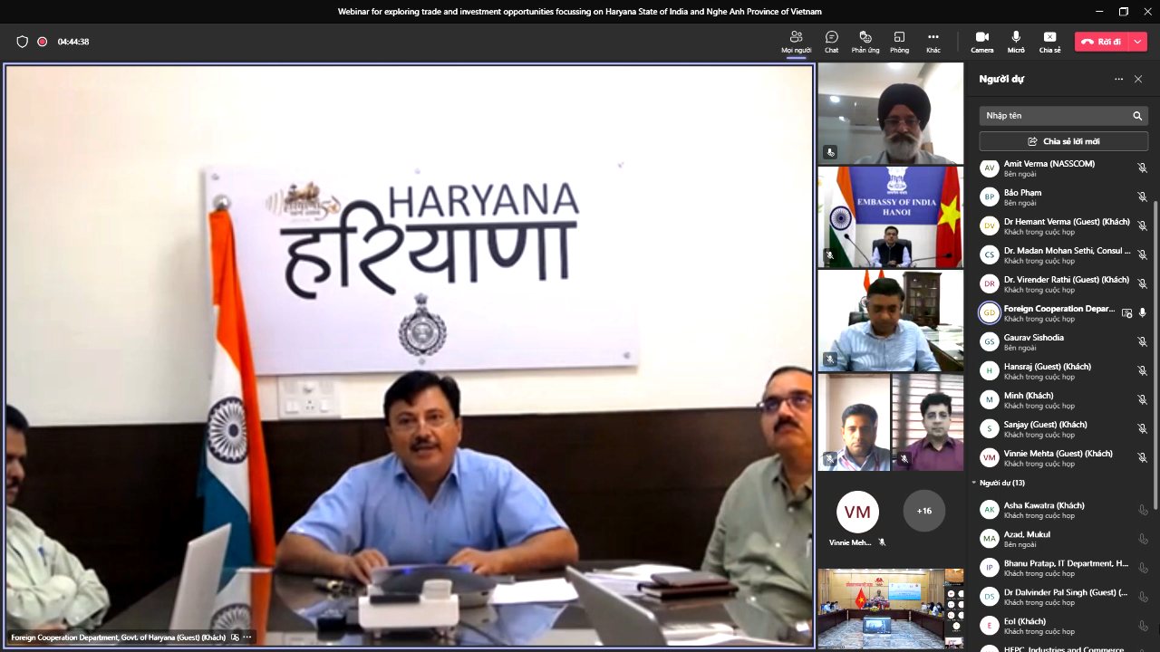 India@75: Webinar to Explore Trade and Investment Opportunities between Haryana and Nghe An Province - March 30, 2022