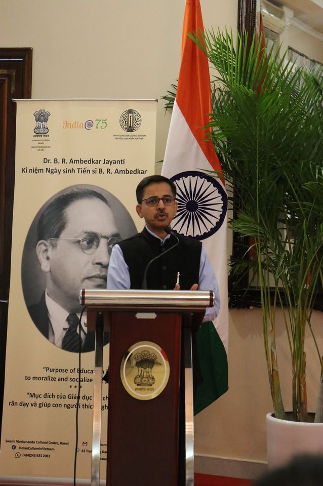 As India marks the 75th year of its Independence, the Embassy family, joined by friends from Vietnam, paid tributes to Dr. B.R #Ambedkar on his 130th birth anniversary on 14 April 2021, remembering with gratitude a key architect of India’s Constitution and his seminal contributions to the cause of equality, justice and people’s empowerment.
