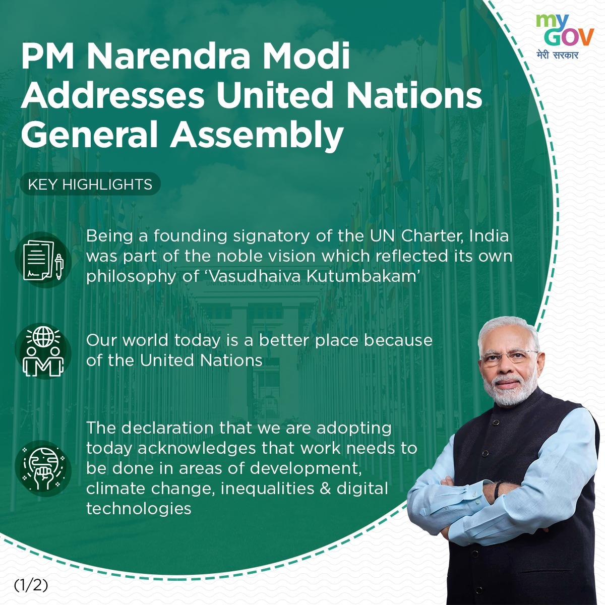 Prime Minister Shri Narendra Modi addressed the United Nations General Assembly today through video conferencing.