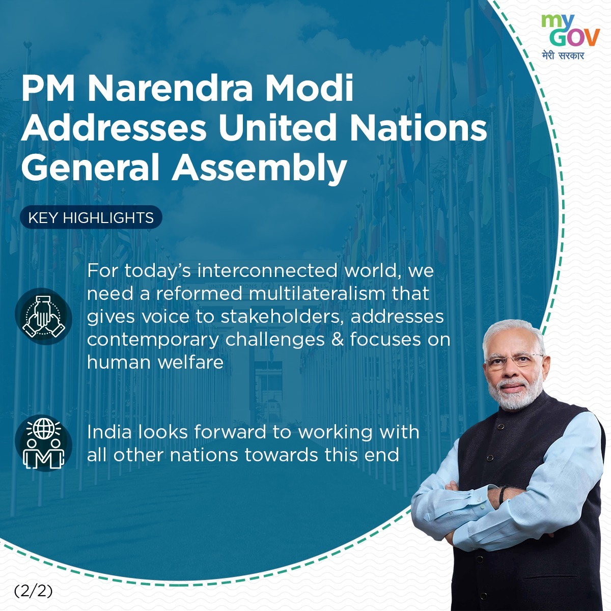 The Prime Minister said without comprehensive reforms, the UN faces a crisis of confidence and today’s challenges cannot be fought with outdated structures. He added that for today’s interconnected world, we need a reformed multilateralism: that reflects today’s realities; gives voice to all stakeholders; addresses contemporary challenges; and focuses on human welfare. India looks forward to working with all other nations towards this end.