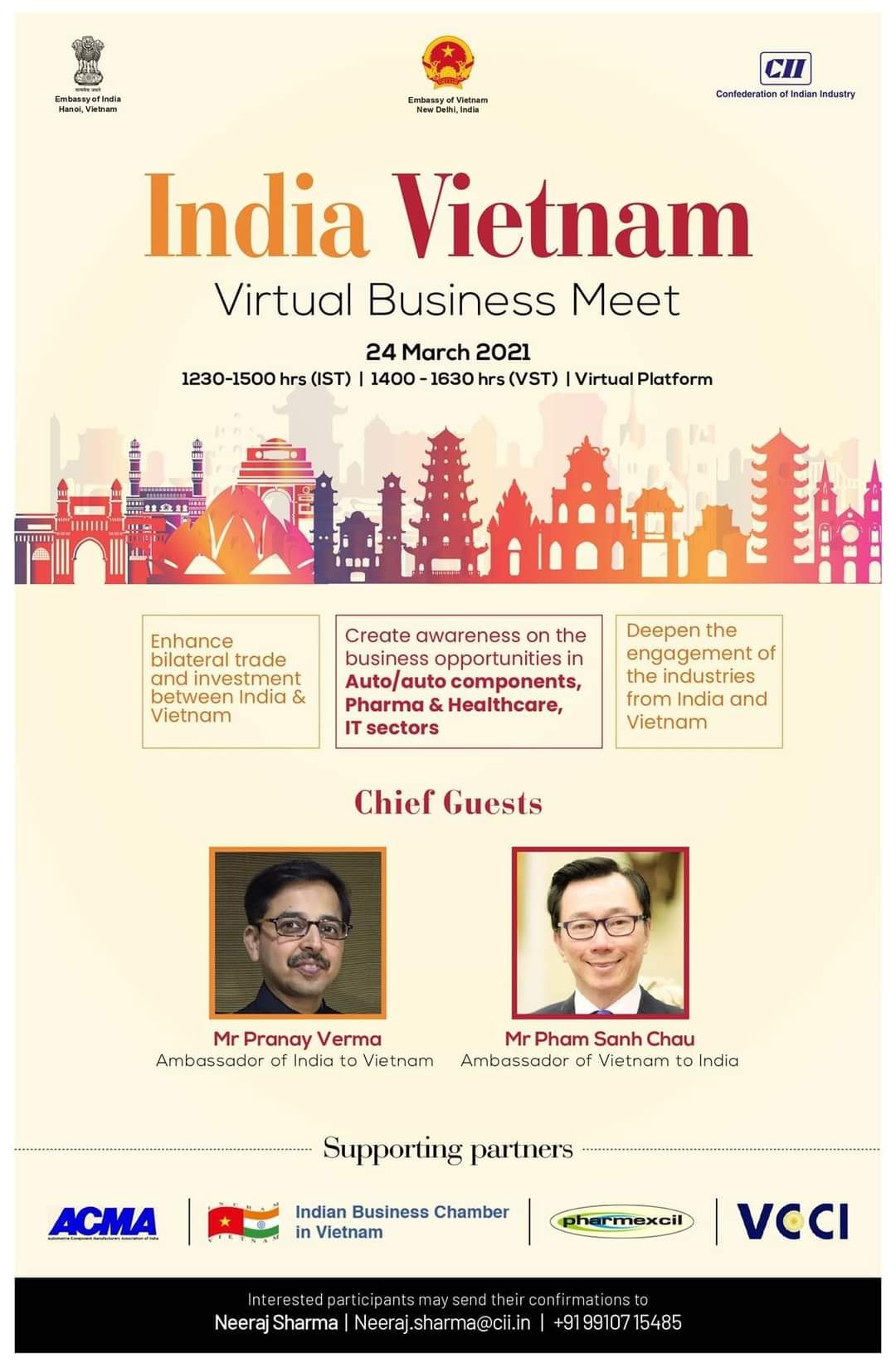India values Vietnam as an important pillar of its Act East policy and its Indo-Pacific Vision. In both these constructs, we place a lot of importance on 3 C’s – Connectivity, Commerce and Culture. Today’s Business Meet will aid our efforts in strengthening these engagements with Vietnam and facilitate building long-term linkages between our two economies.